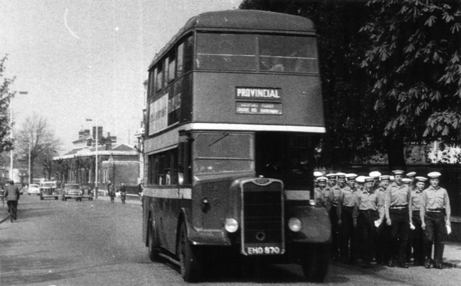 31 (EOR 877) at Gosport Ferry somewhat worse for wear, note the offside panel repair around the fuel filler. In the background can be seen a Hants & Dorset Bristol K and a Provincial Park Royal Guy Arab III. Photo: Stephen Didymus Collection