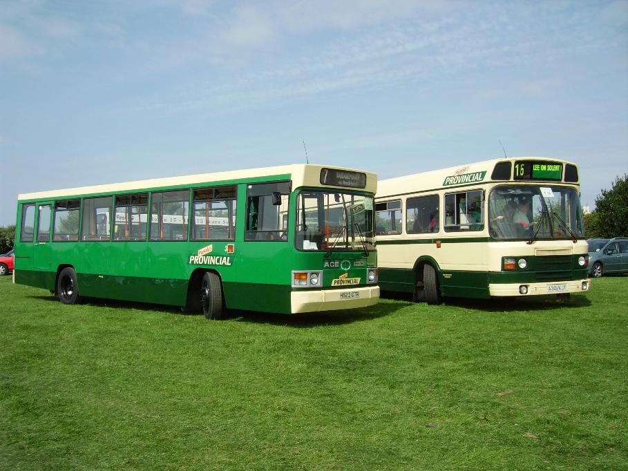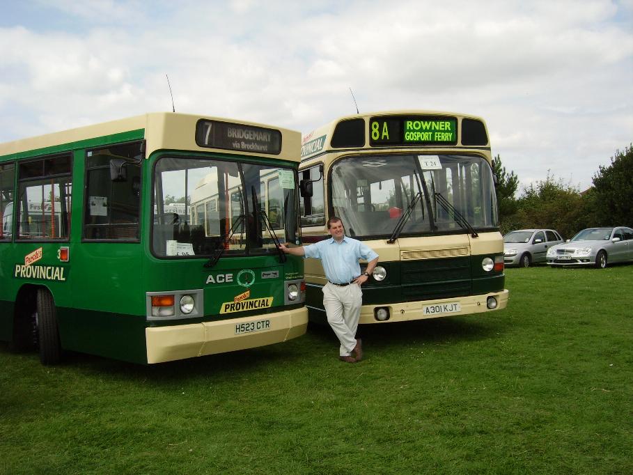 Whitaker's venerable AEC Regal 24 surrounded by a First and Royal Blue Coach